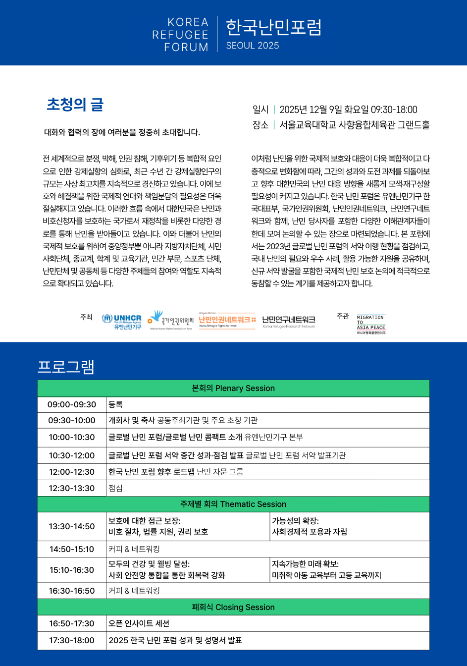 - 행사명: 2025 한국 난민 포럼